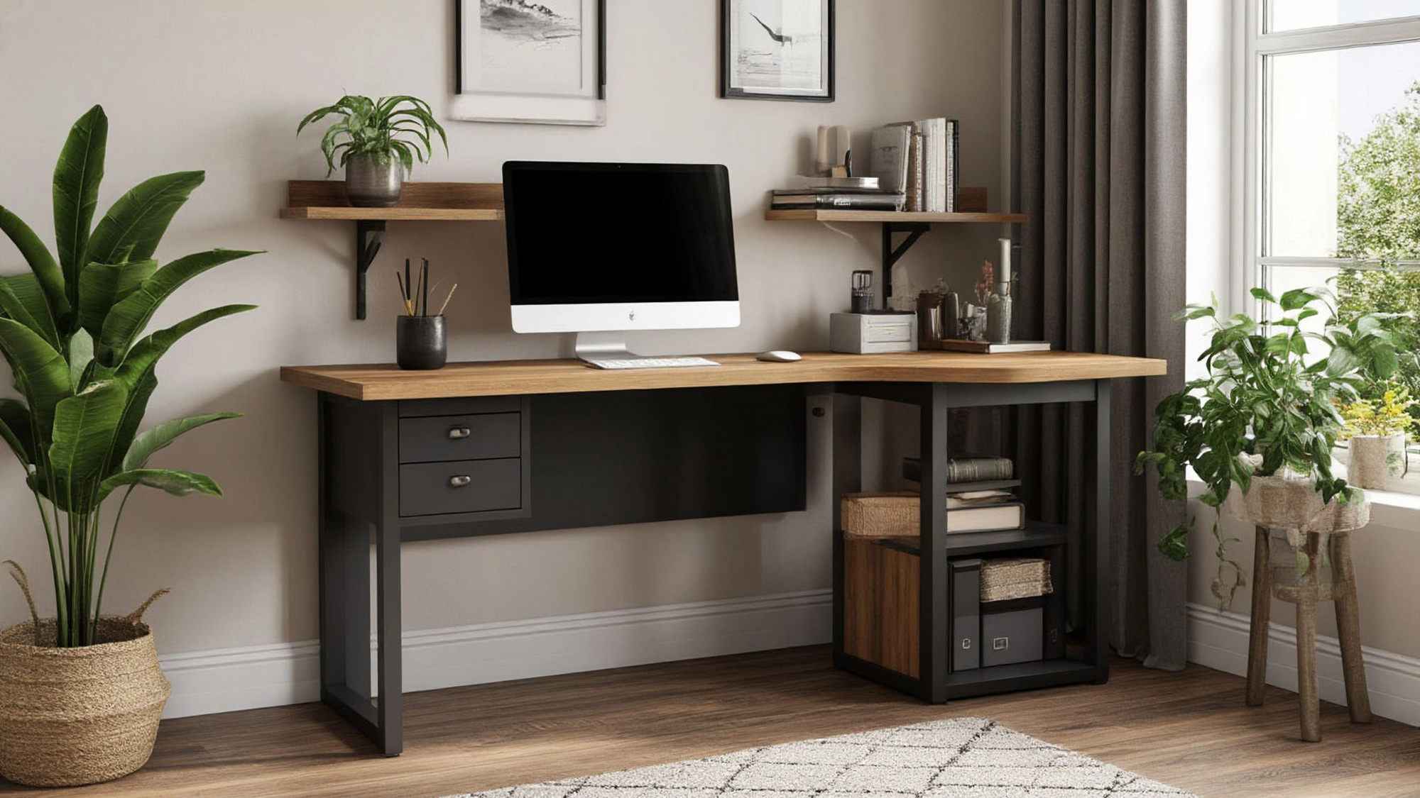 Дополнительное удобство предоставляют две полки под столешницей, которые обеспечивают ещё больше пространства для хранения. Здесь можно разместить папки с документами, коробки с мелочами или даже небольшие ящики для канцелярии. Это решение помогает эффективно использовать каждый сантиметр вашего рабочего места и делает его более организованным. Полки под столешницей также могут быть использованы для хранения предметов, которые вы хотите держать вне поля зрения, сохраняя таким образом чистоту и порядок на рабочем месте. Это особенно важно в условиях современного ритма жизни, когда каждое мгновение на счету.