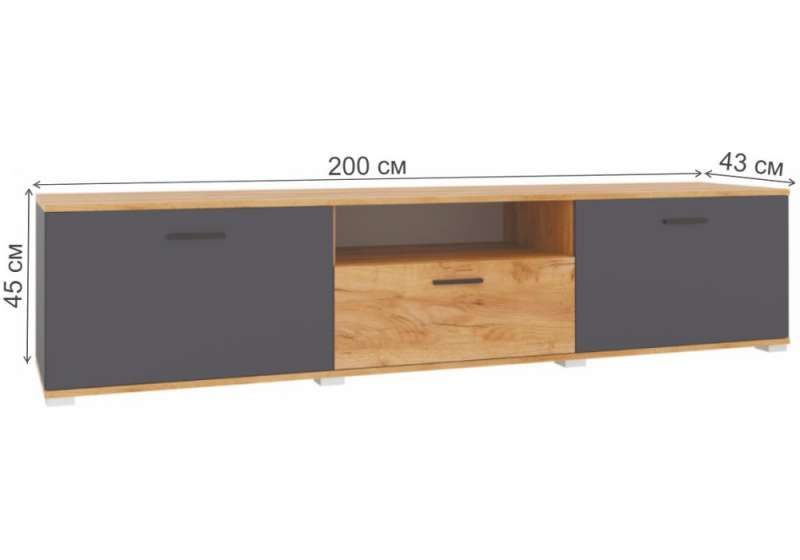 ТВ-тумбы Кассандра дуб крафт золотой / антрацит (200x43x45).