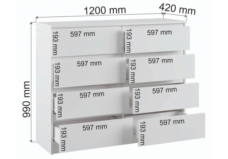 Комод Мадера 1200.8 лдсп белый (120x42x99).