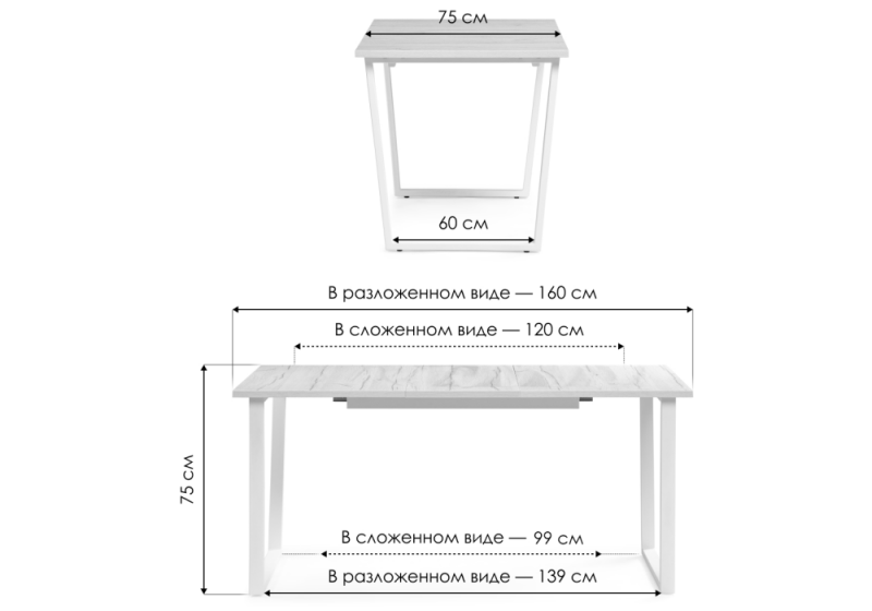 Длина стола в разложенном виде: 160 с