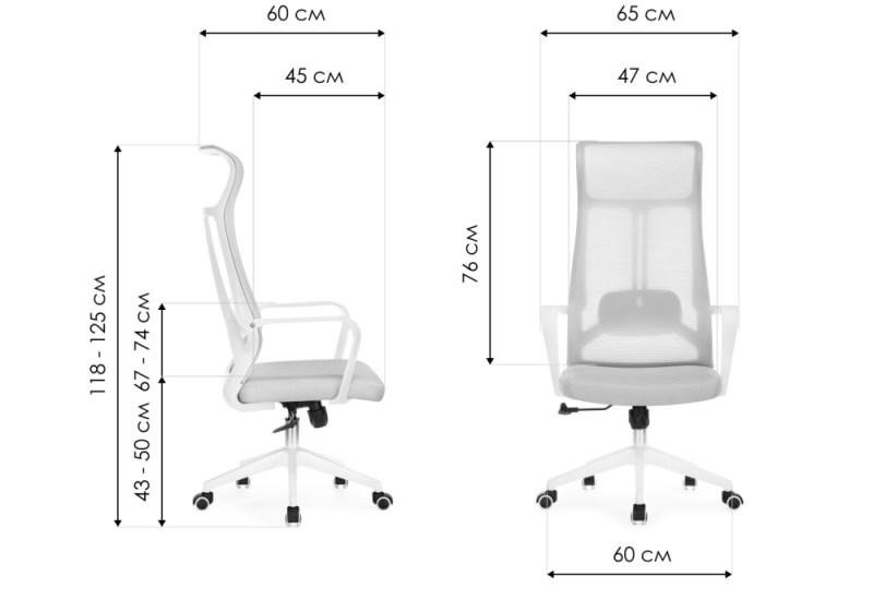 Высота подлокотников: 67 см. Диаметр крестовины: 60 см.